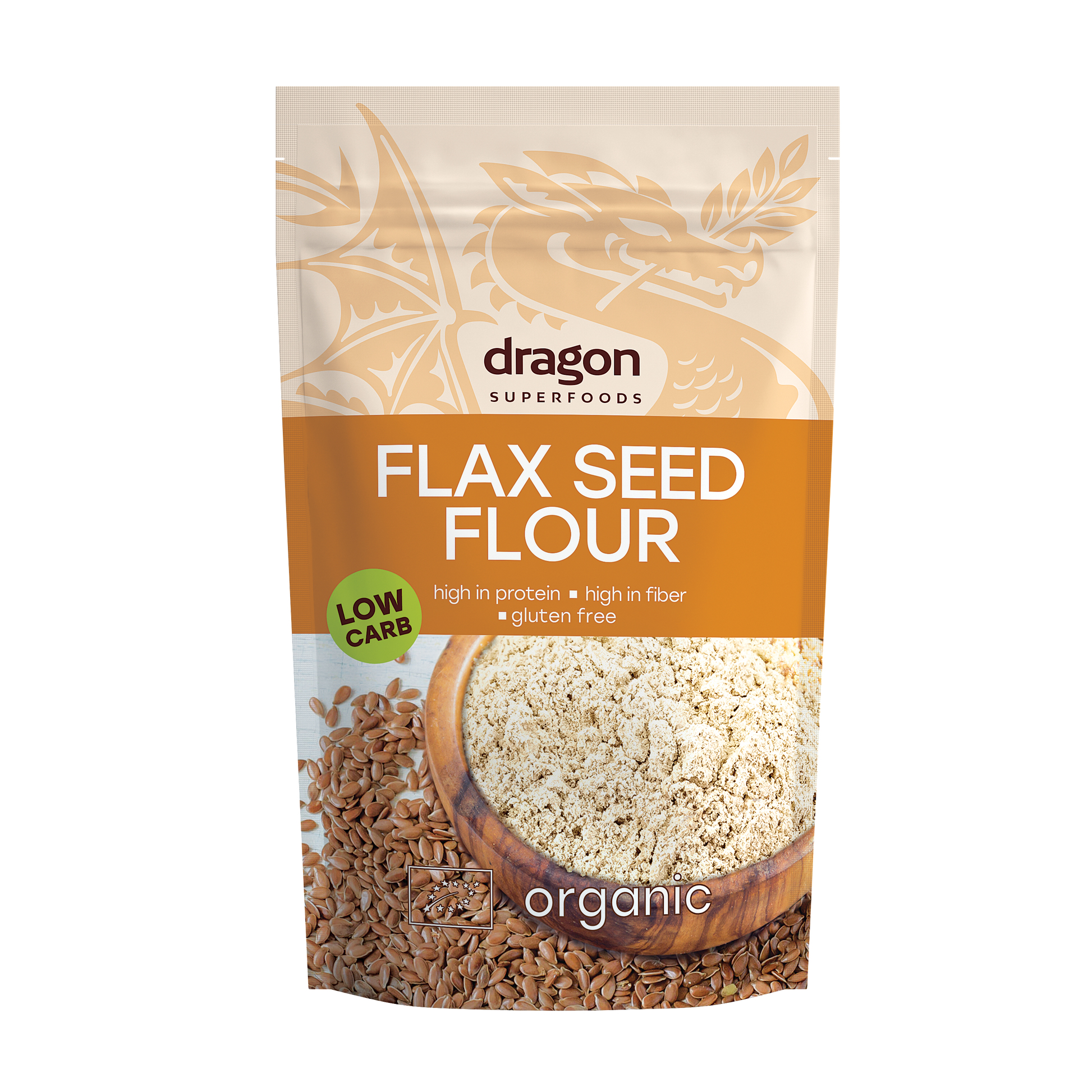 Enhance your recipes with the nutritional power of Dragon Superfoods Flaxseed Flour, made from cold-pressed organic flaxseeds for maximum freshness and potency.