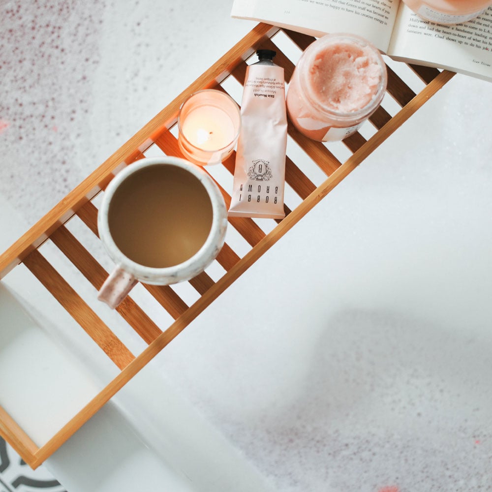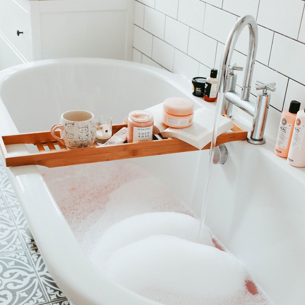 Made from water-resistant bamboo, this bath caddy is sustainable