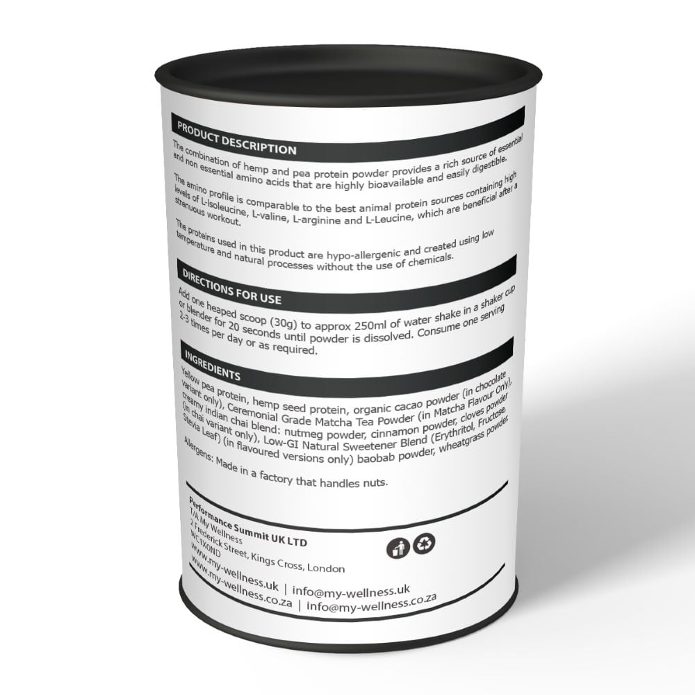 High Protein Content: Each serving delivers 20g of protein sourced from a blend of yellow pea protein and hemp seed protein, offering a rich source of essential and non-essential amino acids vital for post-workout recovery.