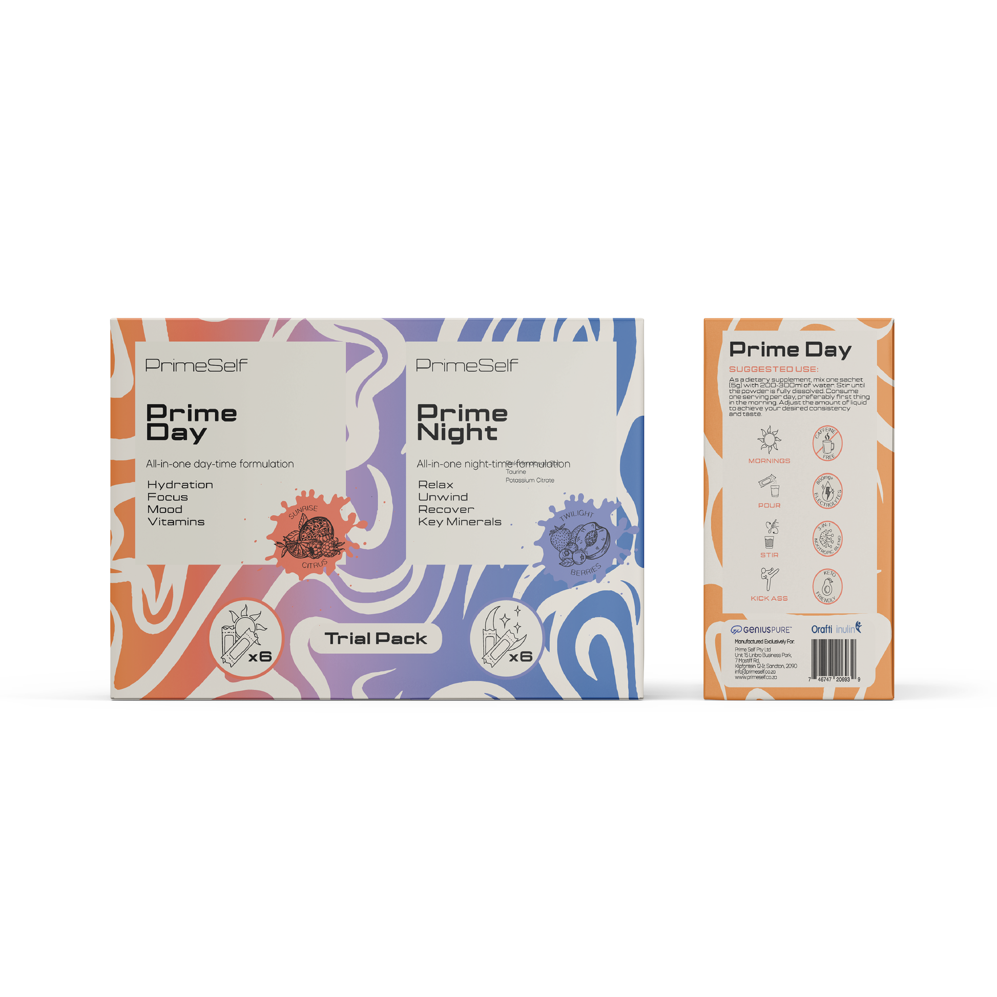 Discover the power of round-the-clock wellness with PrimeSelf’s Trial Pack- a convenient 6-day introduction to our flagship daytime performance and nighttime recovery formulas. Designed to work in harmony, Prime Day energizes your body and mind for the day ahead, while Prime Night promotes deep, restorative sleep to help you reset and recharge.