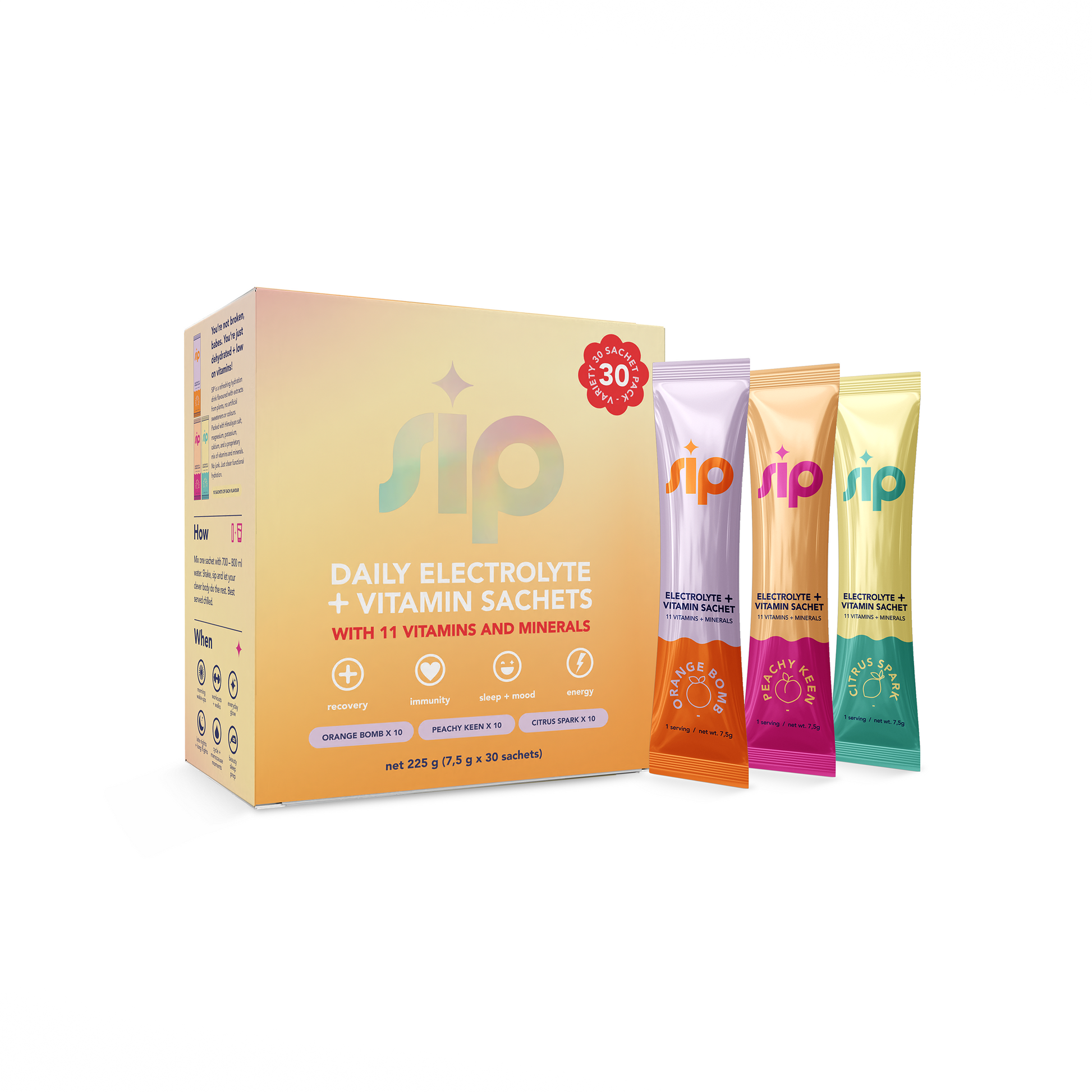 Functional support for ENERGY, IMMUNITY, SLEEP + MOOD, RECOVERY.
